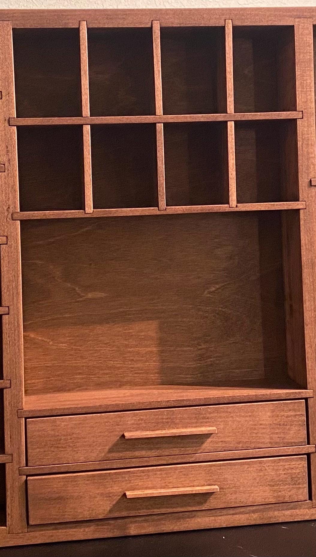 Dollhouse Miniature Bookshelf Display Shelf Handcrafted Wood 3 1/2 ” x 4 1/2″ 1:12 scale